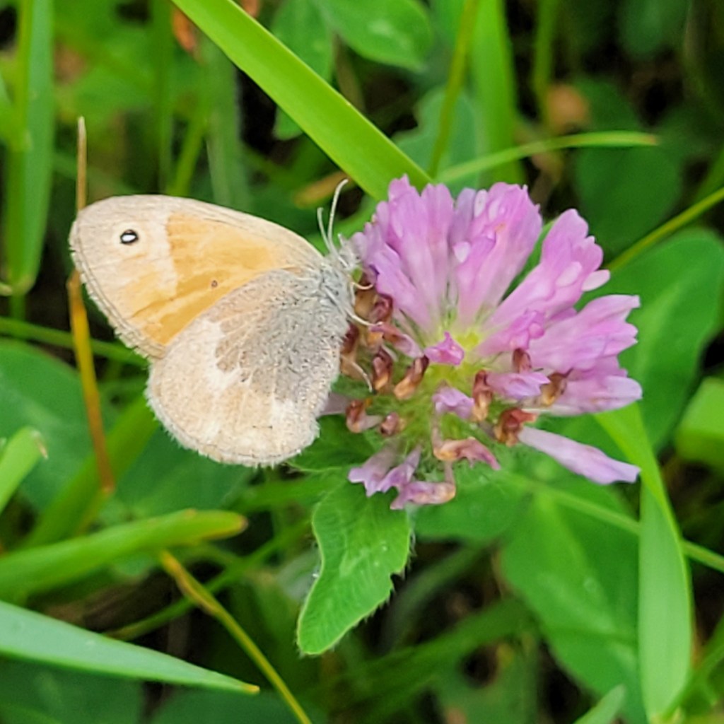 Other flowers that are butterfly magnets — like Wild Bergamot, Purple Coneflower, Joe Pye Weed — usually start blooming in July. So, for now, I walk through Red Clover patches, phone camera in hand. (All photos here were taken in June, 2022, in the park.)