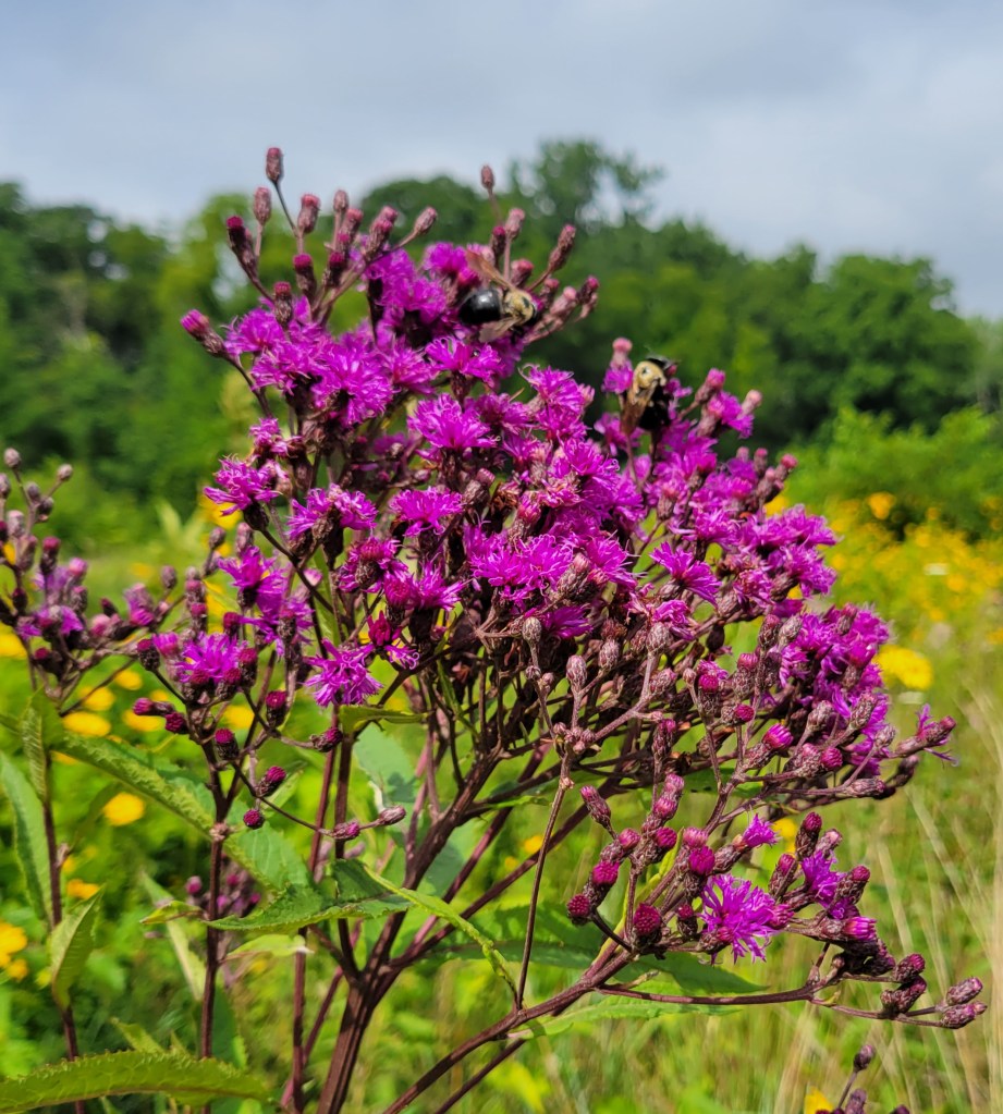 2. Ironweed, a tall and brilliantly-colored flower, reaches its seasonal peak.