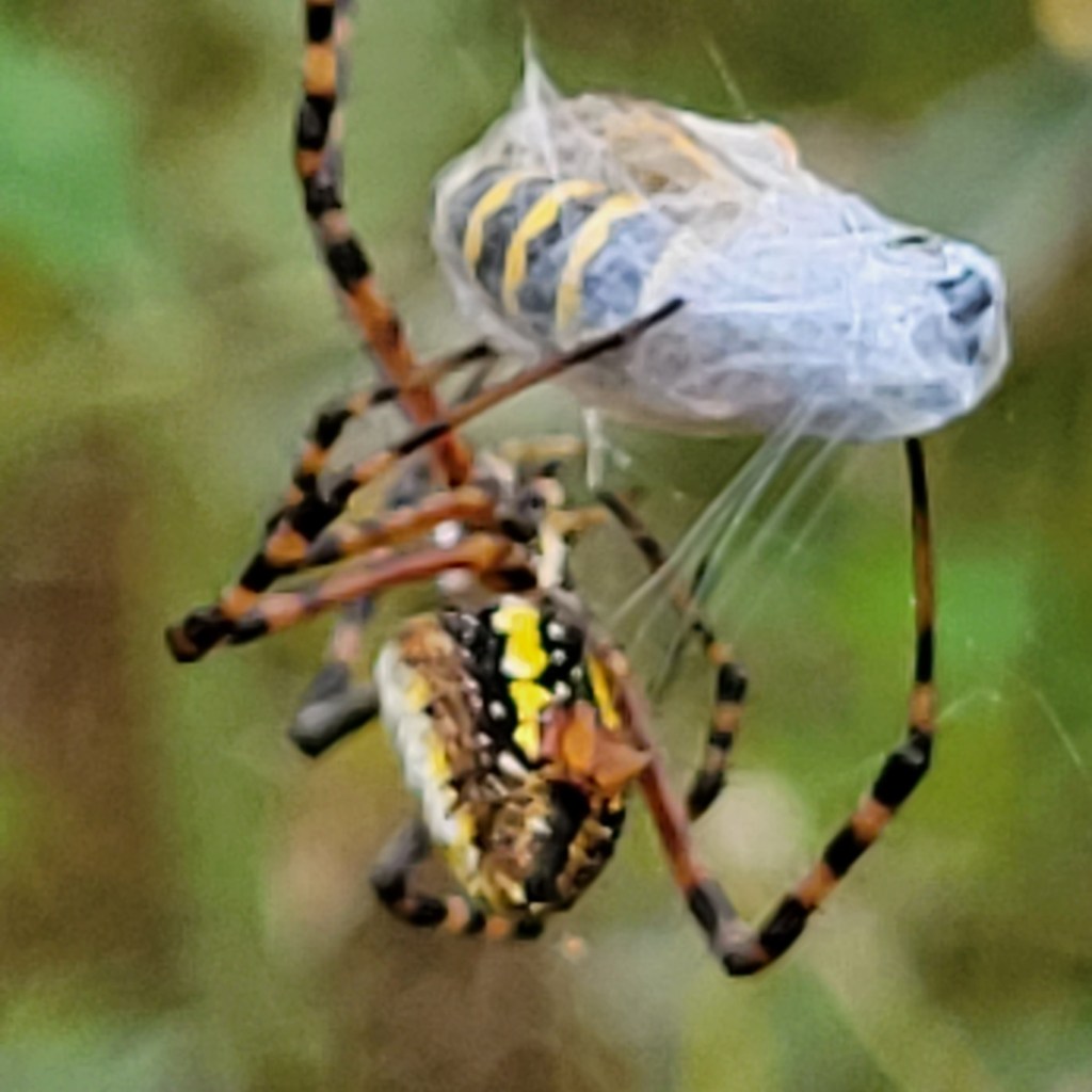My favorite webs are the large circular webs made by orbweavers.And my favorite ordweaver species is Banded Argiope (also known as Banded Garden Spider). It is present in Eliza Howell Park every September.
