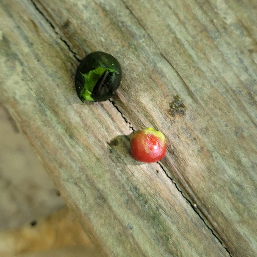 The berries are small and each one that I have opened contains just one seed, a large red seed.
