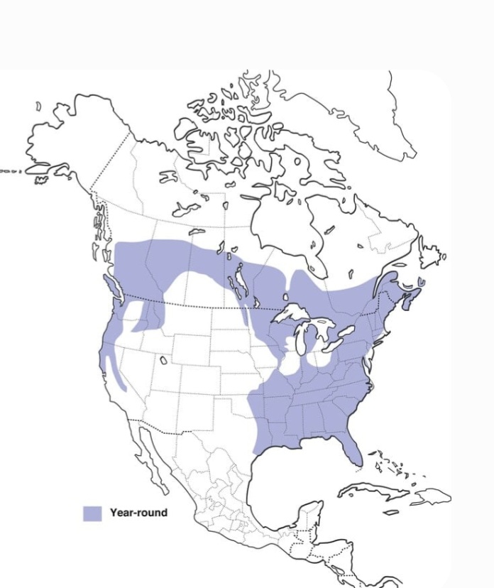 Pileated Woodpeckers are found to the south of us, to the north, to the east, to the west, but Detroit is in one of the areas where they are normally absent. Note the white spots on range map from the Cornell Lab of Ornithology.