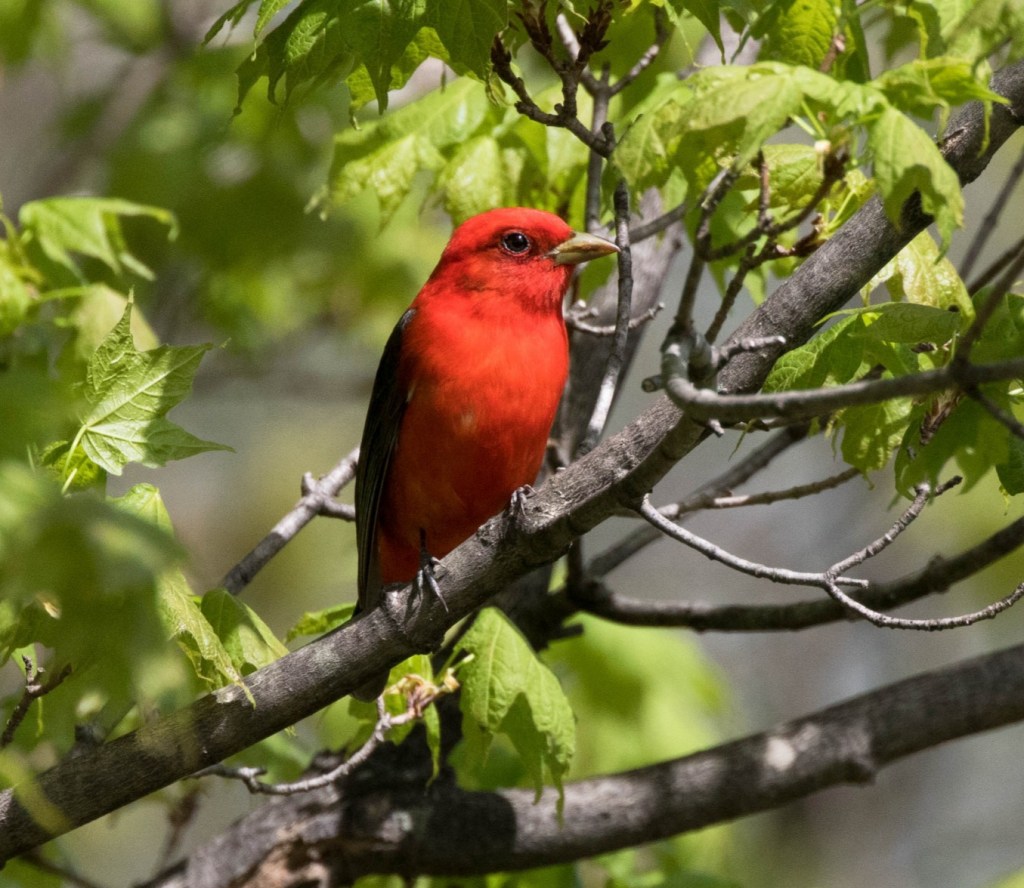 The Scarlet Tanager is a Summer resident in this part of the country, but it does not breed in Eliza Howell, so my sightings of it are brief ones when it arrives back in Michigan on its way to its breeding location.