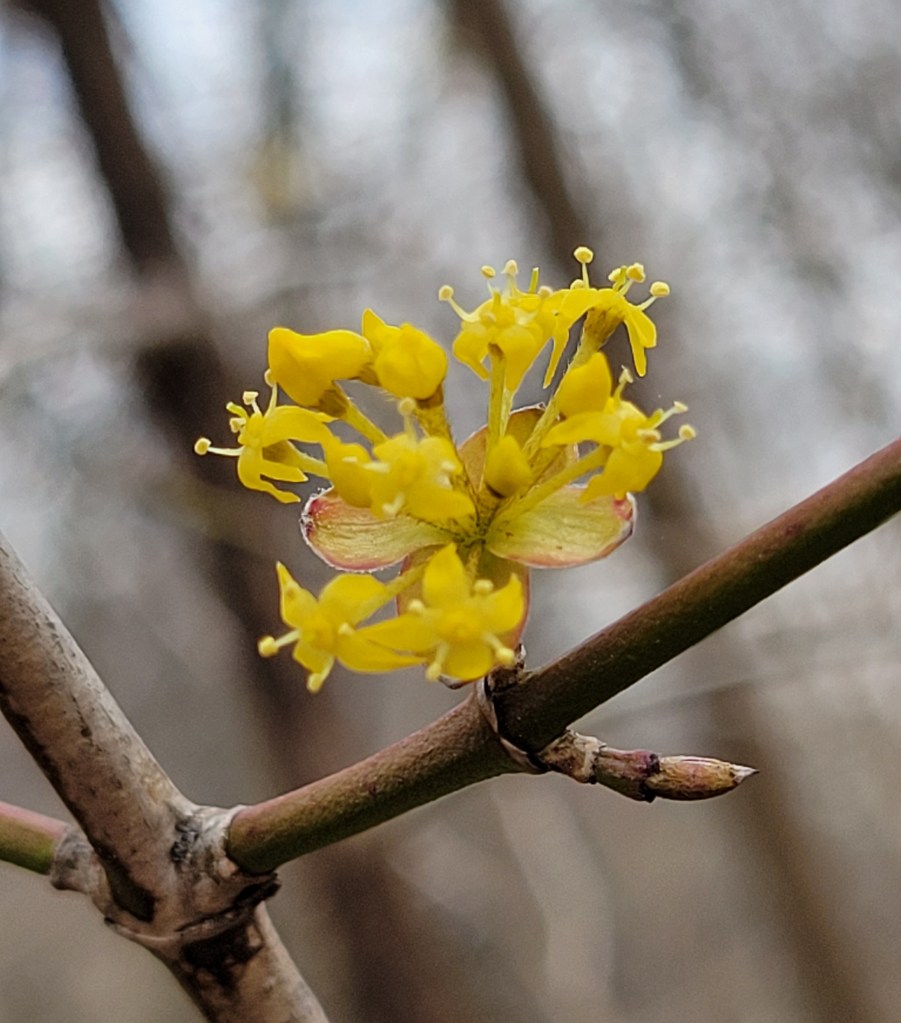 The earliest flowering tree or shrub in Eliza Howell Park is, I think, Cornelian Cherry Dogwood. The buds are now starting to show yellow.