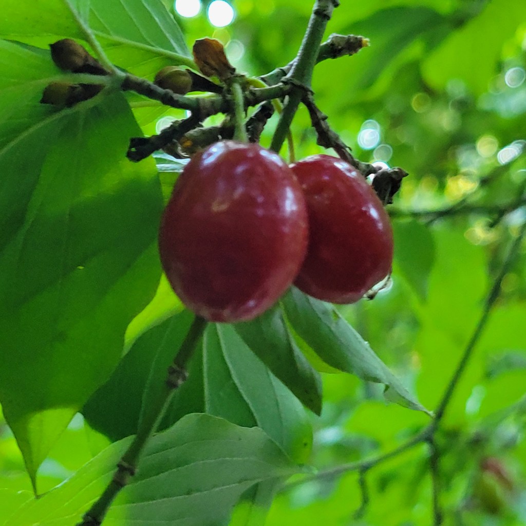 Cornelian Cherry, as it is sometimes called, is related not to true cherries but to flowering dogwoods. The edible fruit somewhat resembles a cherry and has often been used to make jams and juice.