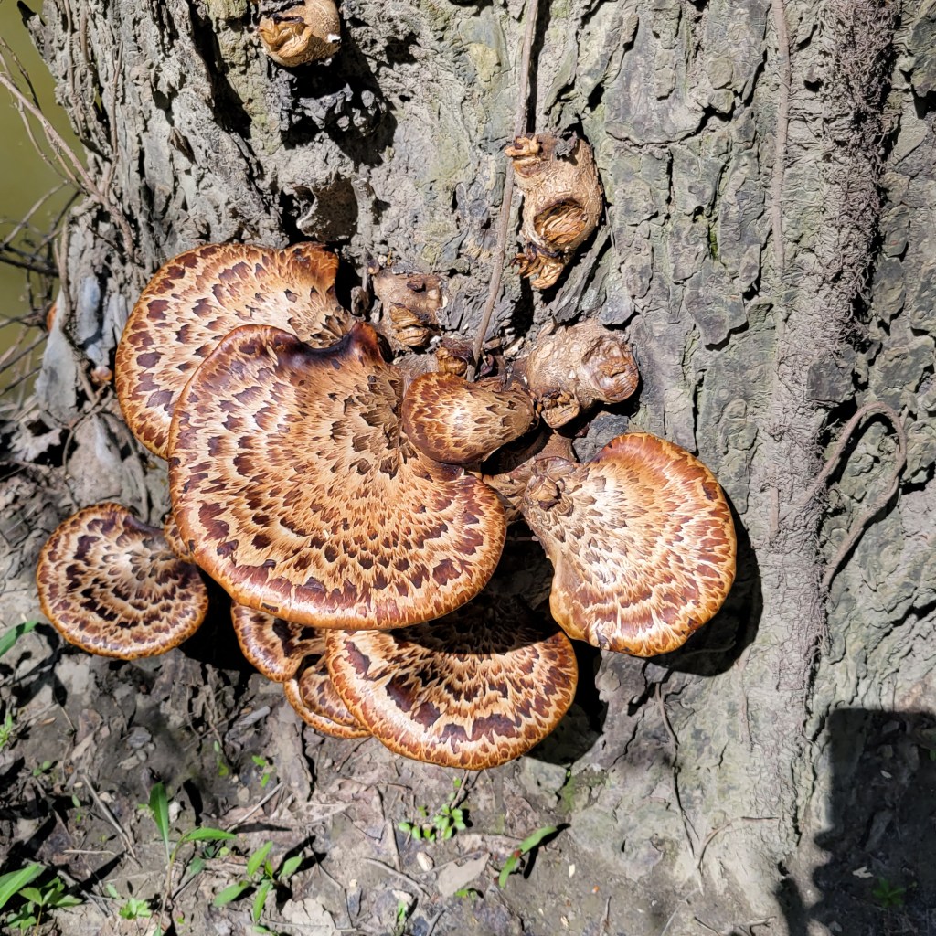 And every year, as wildflower admirers walk the woodland path admiring the Trout Lilies and the Spring Beauties, we inevitably note another equally reliable spring emergent, the mushroom known as Dryad’s Saddle.