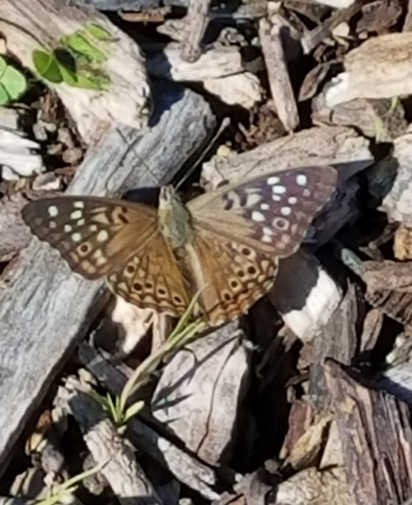 There is another Emperor butterfly found in Eliza Howell Park: Hackberry Emperor. It too feeds on Hackberry leaves as a caterpillar and it too shows up periodically in the park every year.