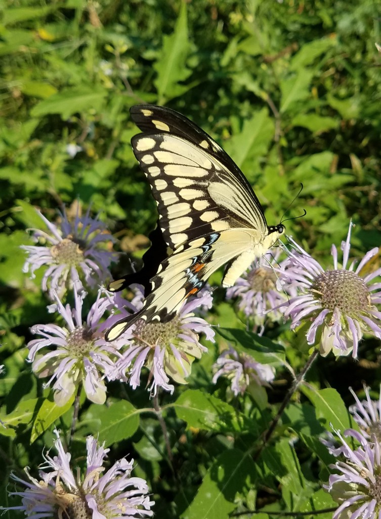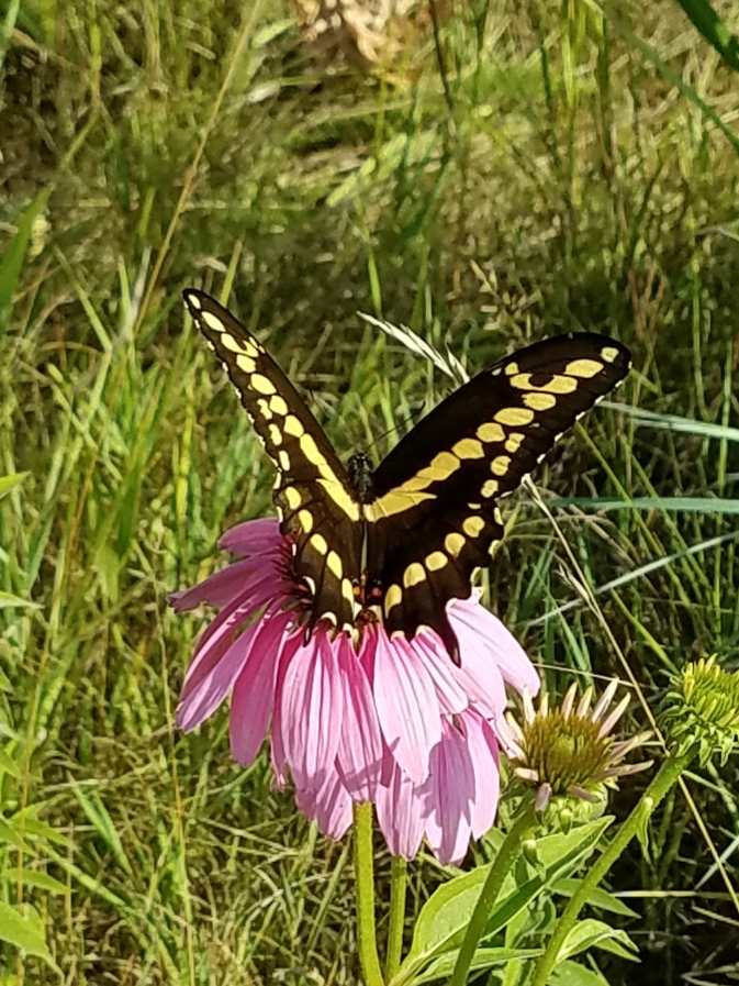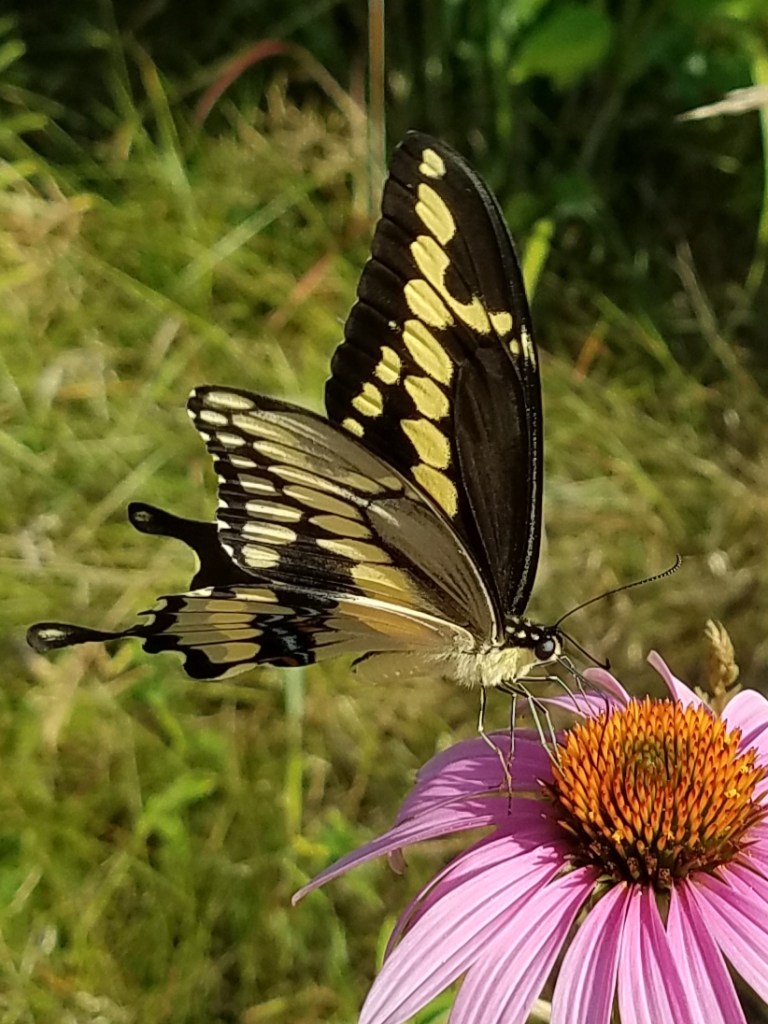 Giant Swallowtail often comes to flowers for nectar. Perhaps because of the time of the summer that it is present here, I have often had success in finding it visiting Purple Coneflower.