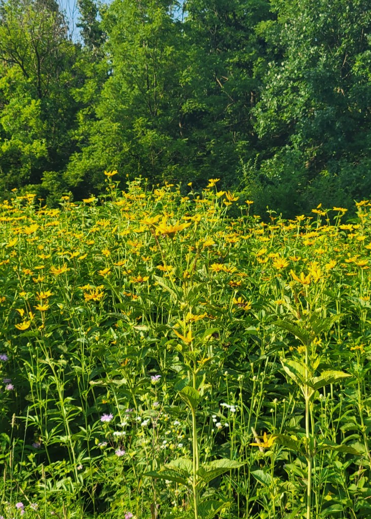 False Sunflower is a perennial that is abundant in the wildflower field where I watch butterflies. It is in full bloom now, in the middle of July. It grows 4 – 5 feet high and has daisy-like flowers.