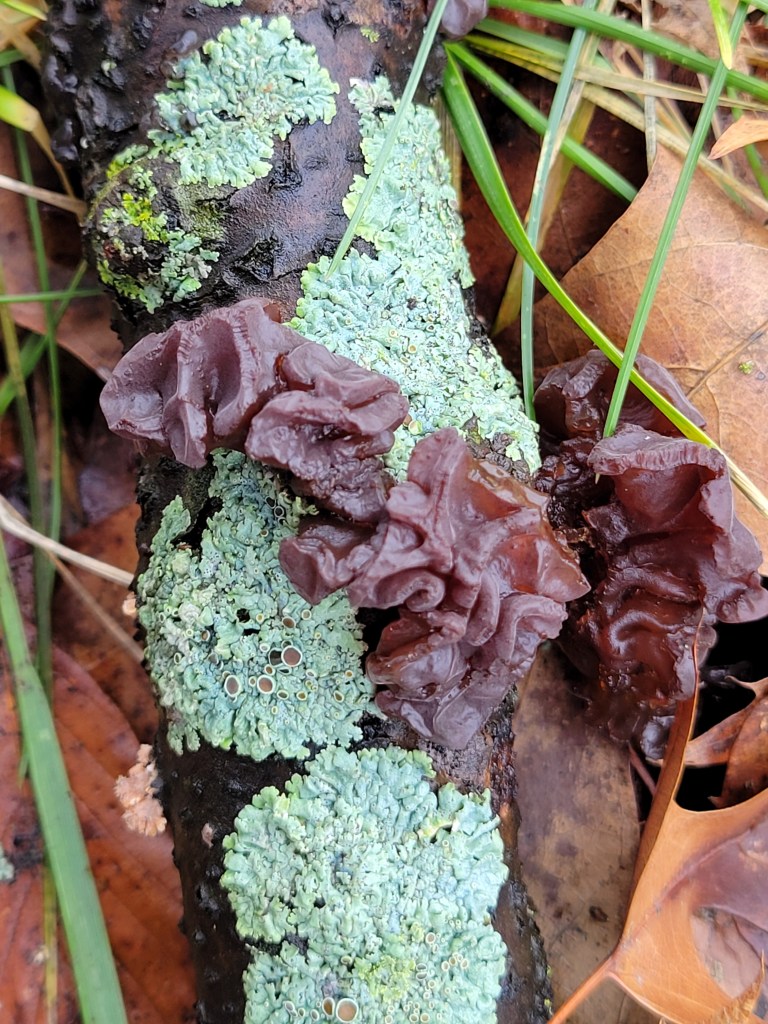 Recently, my attention has been on a species known as Amber Jelly (also known as Jelly Roll, Amber Jelly Fungus, and Brown Witch’s Butter).