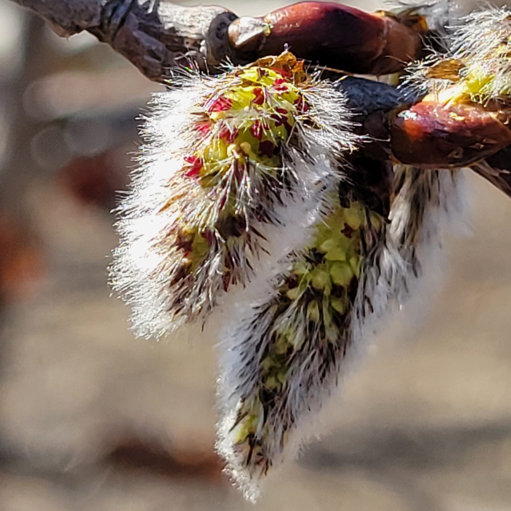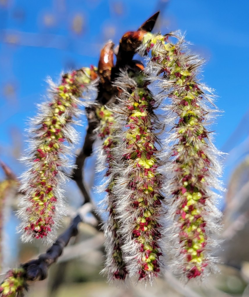 The Aspen flower buds in Eliza Howell Park are fuzzy in early March. Over the next weeks, the flowers will develop into hanging clusters of seeds (catkins).