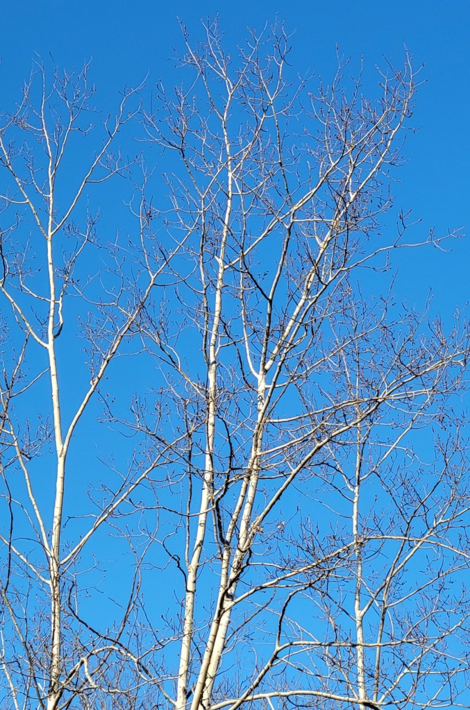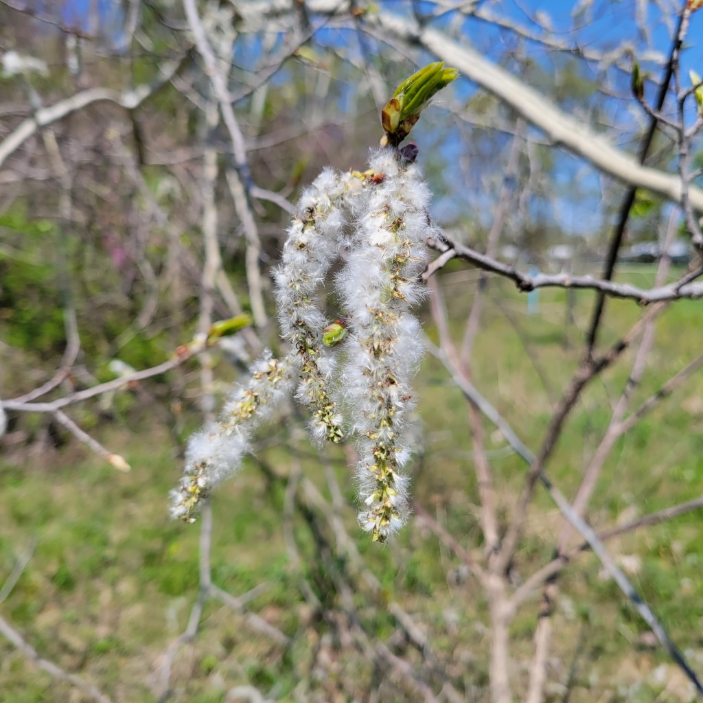 During the winter of 2022 – 2023, one tree in the small grove of Quaking Aspen in the park was blown almost entirely down, but it continues to live. This is the second year it is providing an opportunity to get up-close views of the buds, flowers, and seeds that are usually much too high to study.