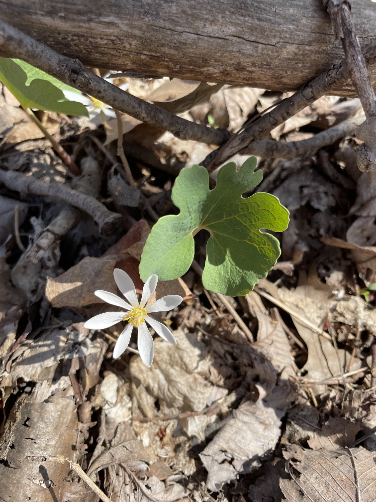 Like other woodland spring ephemerals, Bloodroot appears in the woods in early spring, before