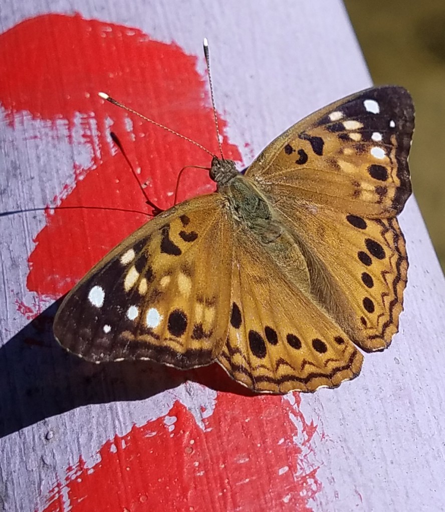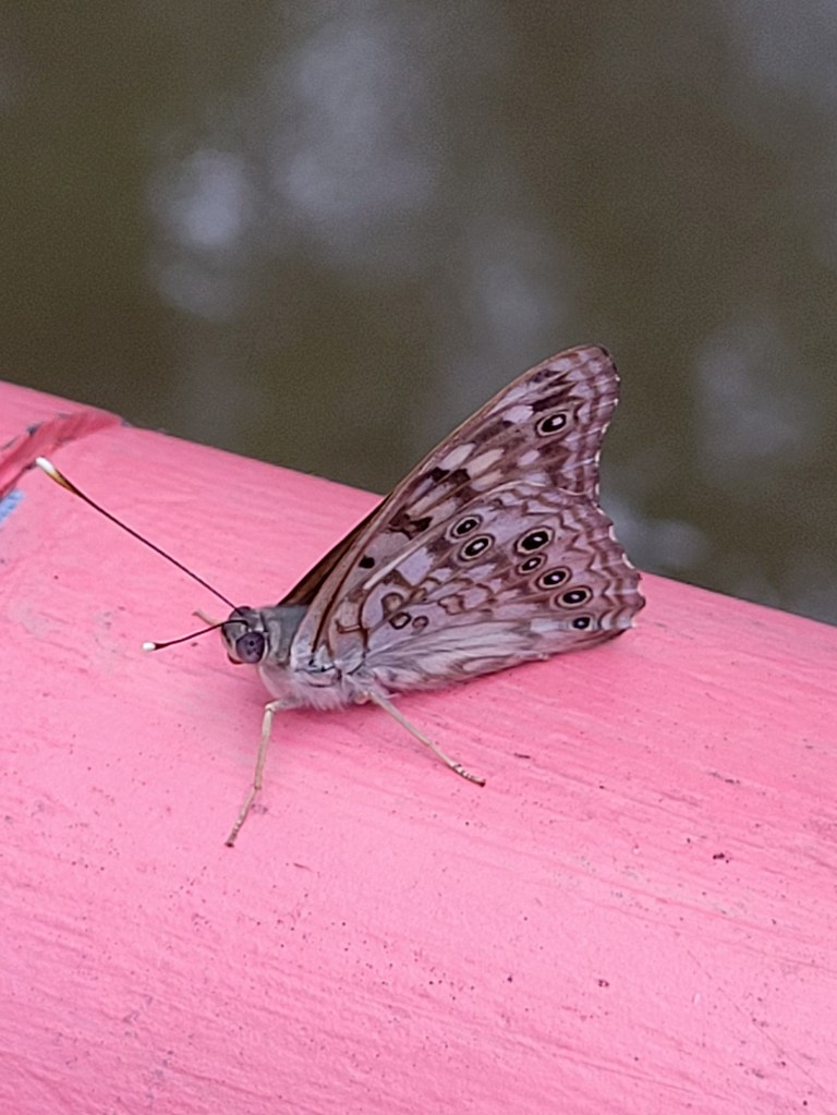 A. Hackberry Emperor butterflies are reported to be attracted to bright colors. If so, they would likely find the painted railings of the footbridge very inviting.