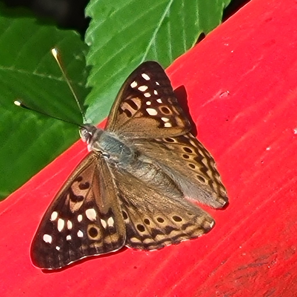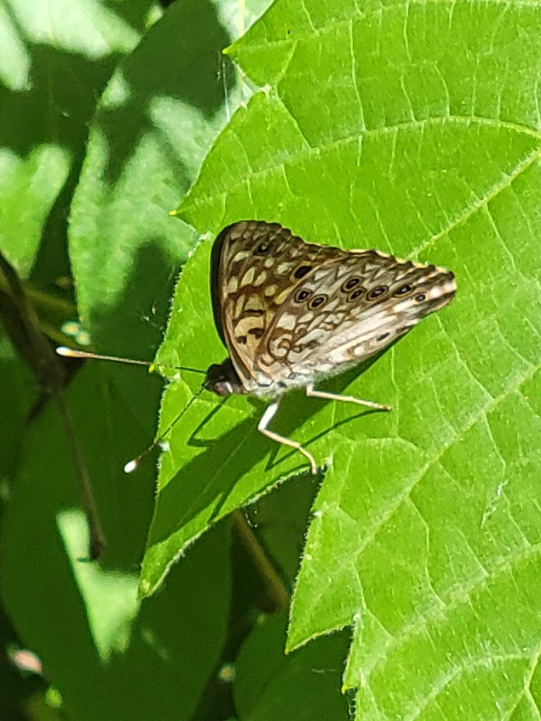 One butterfly that regularly appears in Eliza Howell Park in June is Hackberry Emperor.