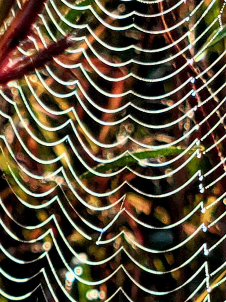 This is best time of the year to find the fascinating webs of a group of spiders called “orb weavers,” named after the (often) large and (always) intricate webs they weave. The webs are almost invisible during the day (the better to snare unsuspecting insects) but can be found early on sunny mornings when the dew is hanging on each thread. They are most visible when one looks among wild flowers in the direction of the sun.