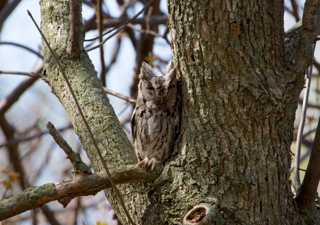 The Eastern Screech Owl is an Eliza Howell Park bird species that doesn’t usually make the record of birds observed during nature walks. It is nocturnal — and this nature walker tends to be diurnal.