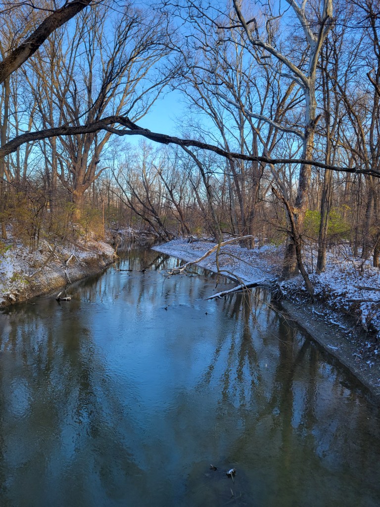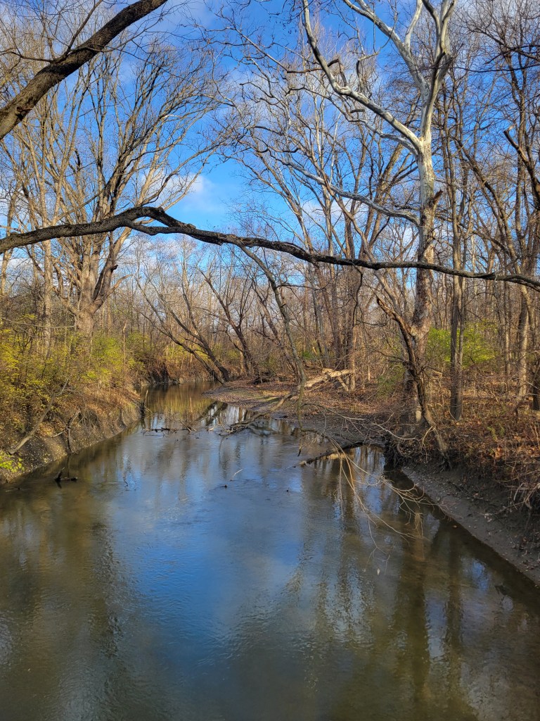 It takes about two months, essentially the months of October and November, for the leaves on the various deciduous trees along the Rouge River in Eliza Howell Park to complete color change and to fall.