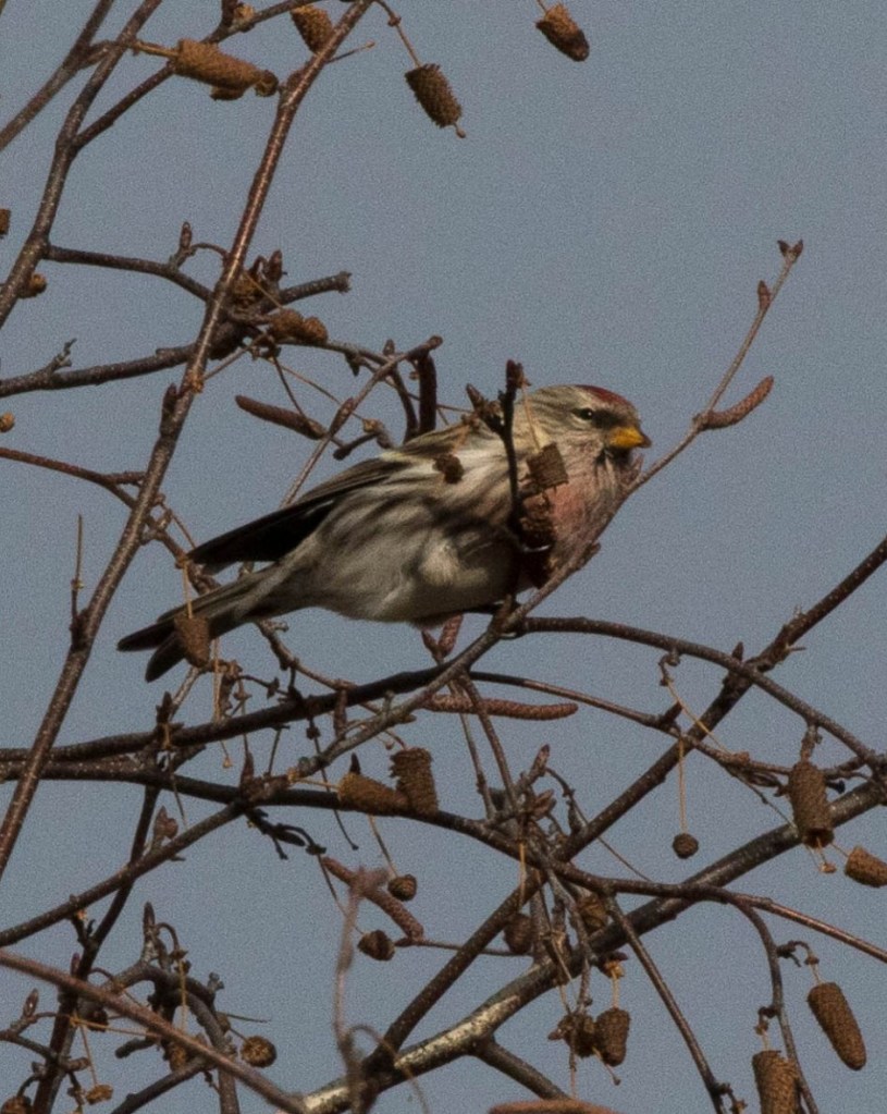 Merlin preys upon small birds and, if it is present at the same time as the Redpolls, a chase is almost inevitable