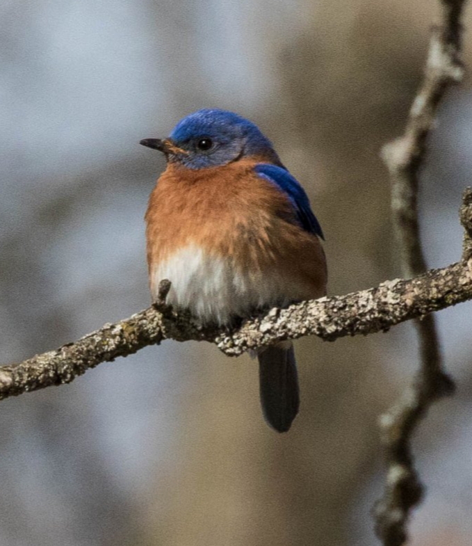 The birds only occasionally in Eliza Howell in winter include a couple that breed here before going south for the winter. One is Eastern Bluebird. This is another case of being in the northern section of its winter range. It is rarely present in the park in winter. When it is, it brings a bright light to winter.