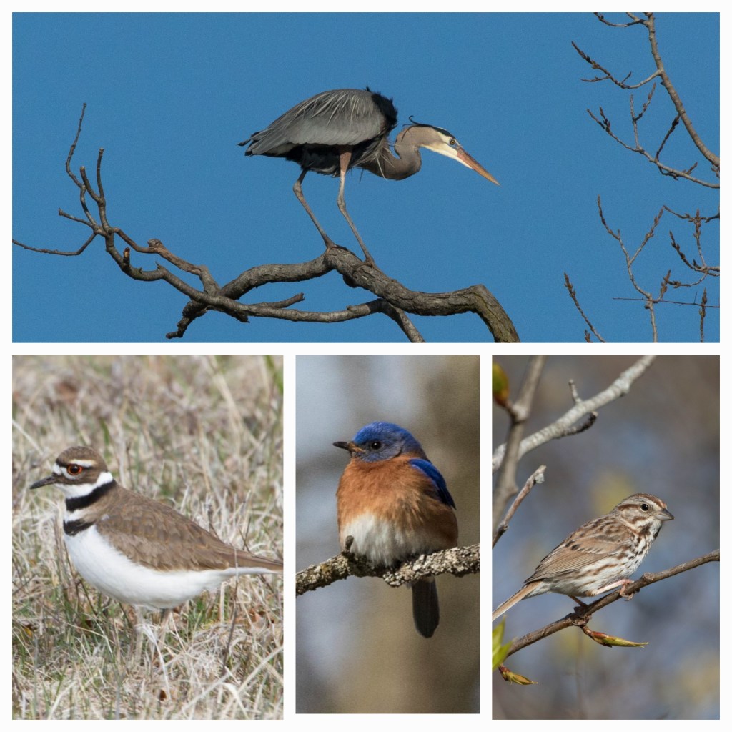 Lower: Killdeer, Eastern Bluebird, Song Sparrow.
