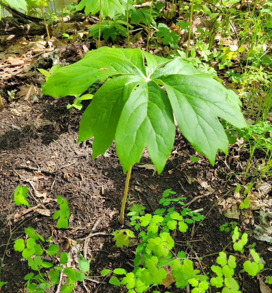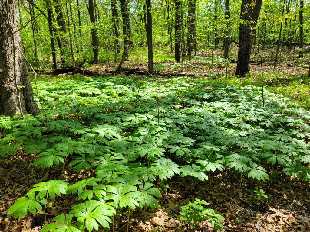 Deer that are common in the park and consume many other green plants do not feed on Mayapple. Mayapple leaves, stems, roots, flowers, and fruit are all toxic to some extent.