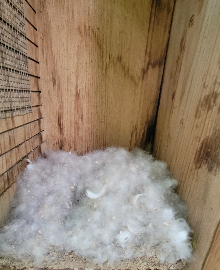 Soon, I noticed that she had started adding white feather down from her body to line the nest.